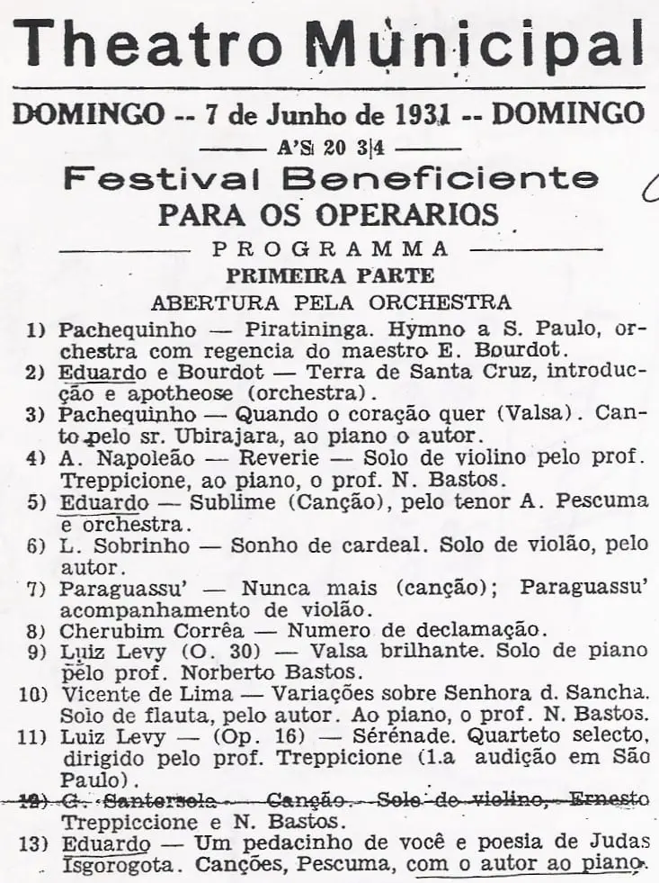 Na sua permanência em São Paulo apresenta-se acompanhado por Levy no Teatro Palácio de SP aonde Carlos Gomes executa algumas de suas composições, o que lhe rende algum dinheiro e seguem então Carlos Gomes e Levy para o Rio de Janeiro.
